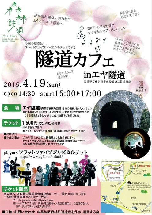 問い合わせ先 中芸地区森林鉄道遺産を保存・活用する会 竹内 妙 TEL 090-9553-8126 メール yanase.rintetu@gmail.com