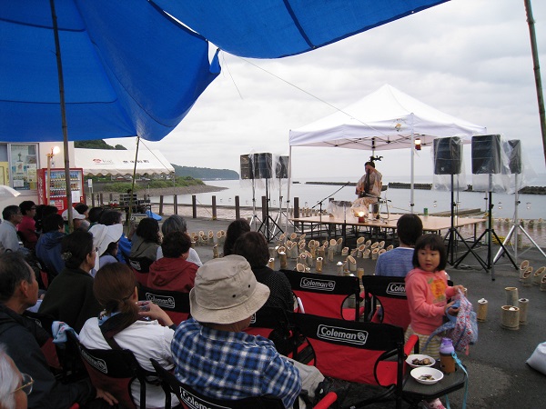今回は(5月23日午後6時開演)土佐清水市出身の土佐琵琶奏者 黒田月水さんを招き、波の音を聞きながら「平家物語と空海」を披露してもらった。