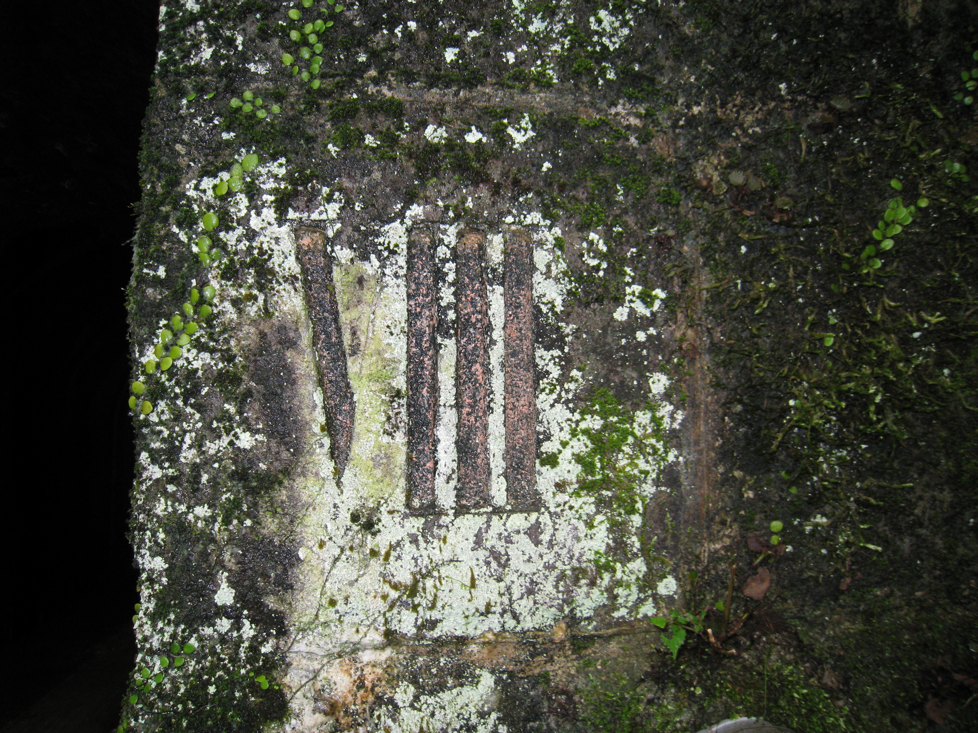 入口の隅石、右側の最上段に8番目の隧道である「Ⅷ」のローマ数字が刻印されている。